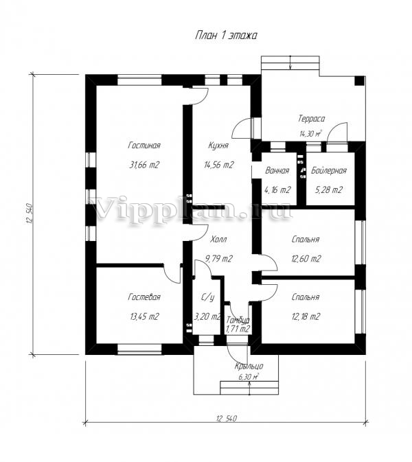 | Размеры дома: | 12.54м×12.54м |