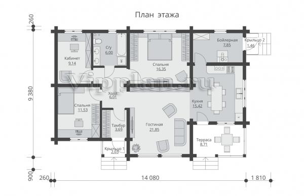 | Размеры дома: | 9.38м×14.08м |