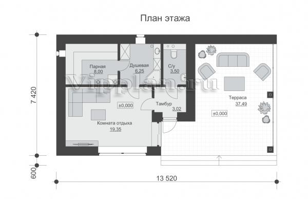 | Размеры дома: | 7.42м×13.52м |
